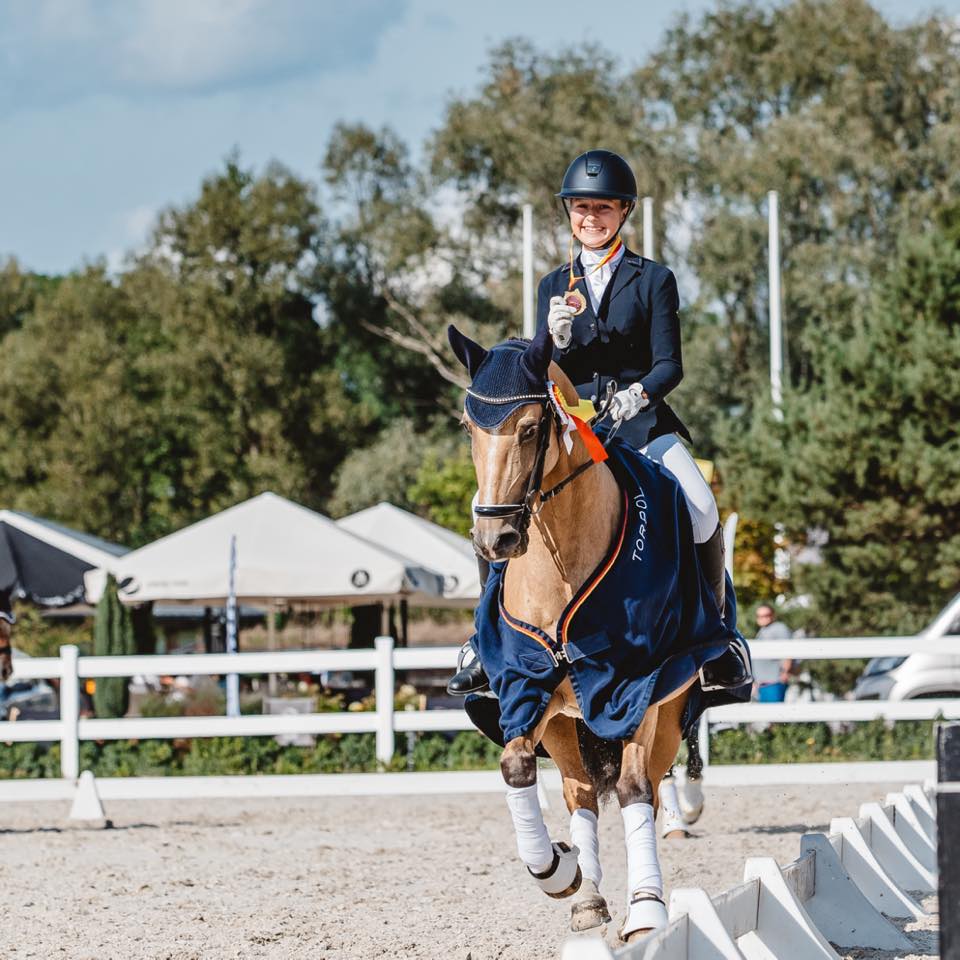 Miło nam poinformować, o kolejnych sukcesach naszej uczennicy Marysia Olejniczak która podczas Halowych Mistrzostw Województwa Łódzkiego w ujeżdżeniu, które odbyły się w Sportowym Klubie Jeździeckim Salio w Biesiekierzu Rudnym w dniach 25-26.04.26r zdobyła tytuły: