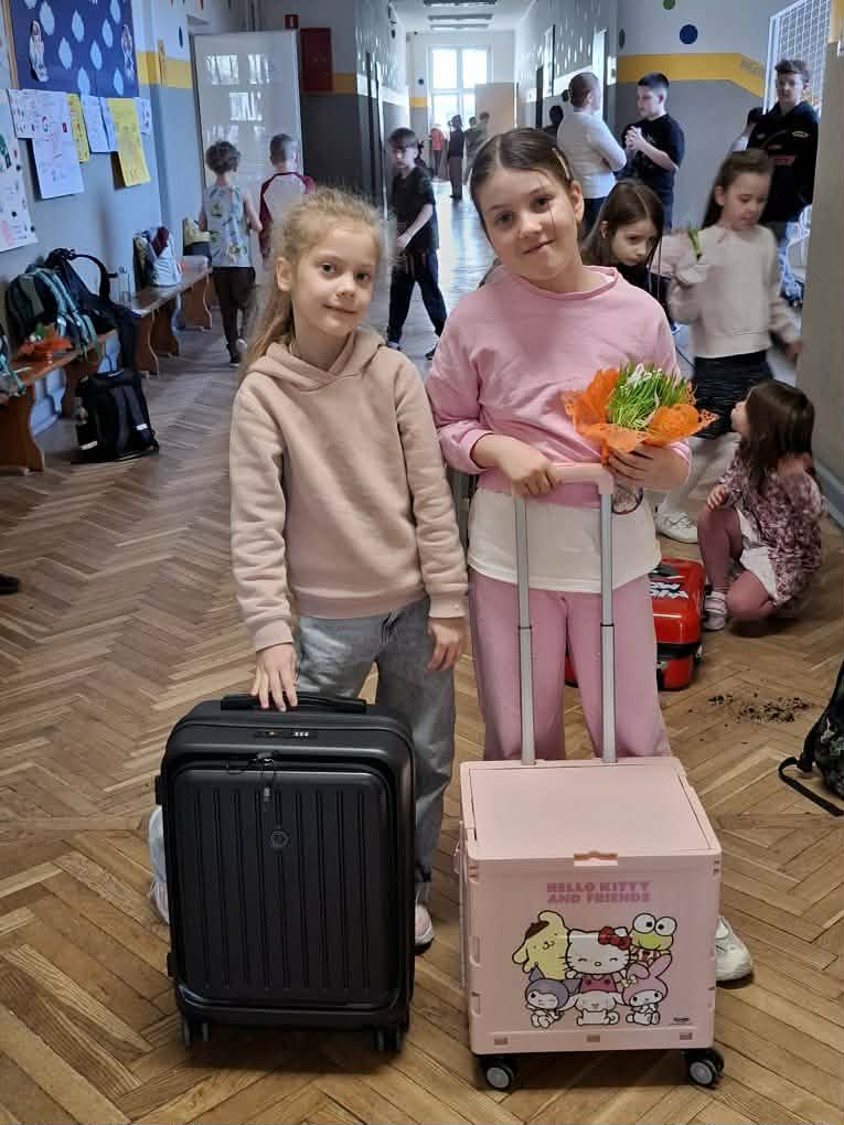 Tego dnia uczniowie mogli wykazać się kreatywnością, zostawić swoje plecaki w domu i książki oraz przybory szkolne przynieść w czymś nietypowym. Zamiast plecaków pojawiły się zatem walizki, pudełka, koszyki, pokrowce na gitarę. Dzieci okazały się bardzo pomysłowe i chętnie wzięły udział w zabawie.